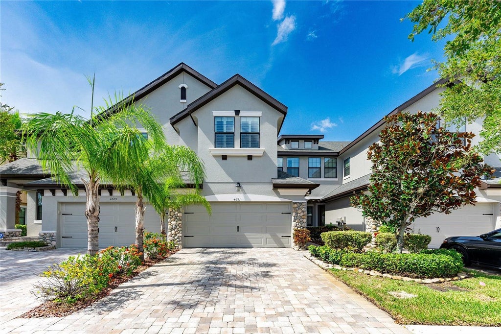 Welcome to a beautifully appointed townhome in the highly sought-after Seven Oaks Community of Maple Glen — where elegance meets everyday comfort. This former model home lives like a single-family home, offering 3 spacious bedrooms, 2.5 bathrooms, and a two-car garage, ideal for families of all sizes. Step into the light-filled, open-concept living area with the beautiful chef-inspired kitchen featuring double ovens, a brand-new microwave, and a stunning center island — perfect for both entertaining and everyday meals. The spacious family room boasts surround sound and an array of upgrades, including crown molding, ceramic tile, wood flooring on the stairs and upper level, plantation shutters, granite countertops, and custom window treatments. Savor your morning coffee in the cozy breakfast nook or relax on the covered lanai, featuring a stunning view, built-in speakers, and tranquil water scenery. The professionally landscaped backyard offers a peaceful retreat for gatherings or quiet evenings under the stars. Upstairs, the spacious primary suite boasts two custom walk-in closets and a luxurious en-suite bath with a garden tub and dual vanities. Two additional bedrooms and a full bath provide ample space for family or guests each with custom closets. The upstairs landing features a built-in desk, making it an ideal space for a home office or a dedicated area for homework. Additional highlights include an upgraded washer and dryer, two ceiling-mounted storage racks, and a walk-in storage room in the garage. Perfectly positioned near Wiregrass shops, Tampa Premium Outlets, and top-rated dining, this home offers unmatched convenience. Just steps from BayCare Hospital and minutes from Advent Health, with easy access to major highways (I-75, SR 56 and SR 54) and top-rated schools — it’s the ideal blend of luxury and location. This pristine, move-in-ready townhome is a rare find. Don’t miss your opportunity to call it home!